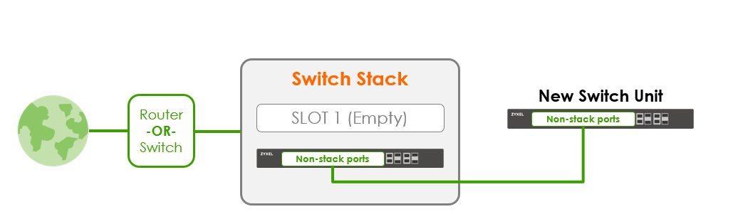 Step 2. Connect new Switch Unit to internet with a non-stacking port