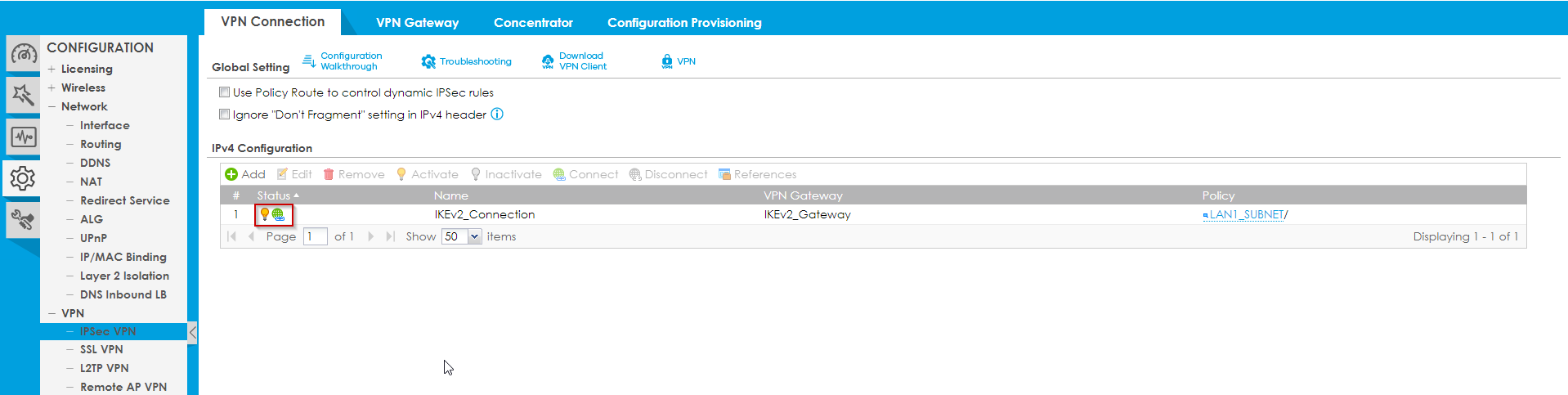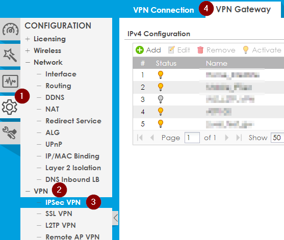 - Go to "Configuration > VPN > IPSec VPN > VPN Gateway"