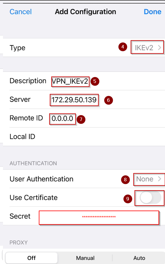 - Enter the Pre-shared Key (same as you entered on the Firewall)