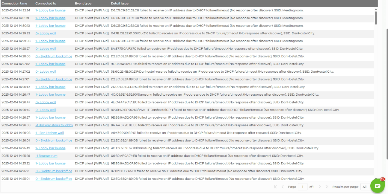 - Navigate to Site-wide > Clients > Connection Log (requires the Nebula Pro Pack) to see the reason for the failed IP assignment. Also verify whether the DHCP pool is full.