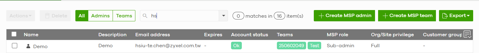 1. Navigate to MSP > MSP Cross-org Manage > Admins & Teams.