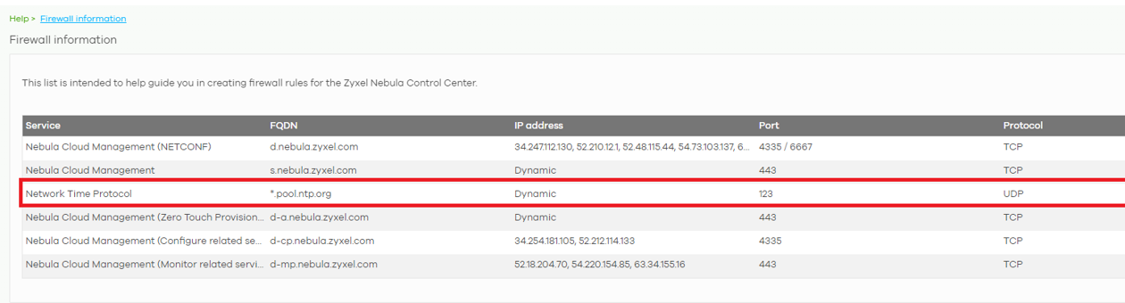 Note: the IP address of NTP server is dynamic.