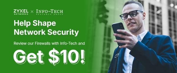 At Zyxel Networks, we're committed to advancing network security through innovation and customer feedback. We've partnered with trusted review platforms to gather authentic insights about our firewall solutions. Your experience matters—it helps peers make better decisions and drives our product evolution. Share your story and earn $25 or $10 gift cards for each eligible review you submit, depending on the review platform.