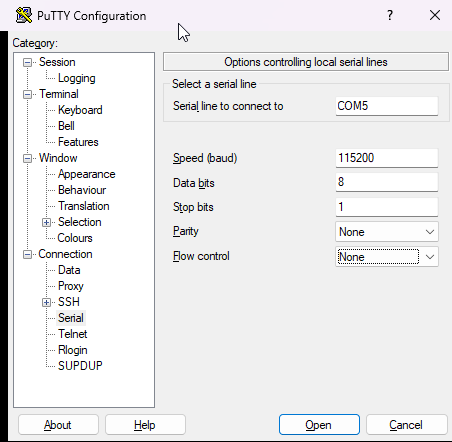 Furthermore I bought a USB → TTL cable and connected Tx, Rx and GND to the pins on the motherboard, I do not get any output in PuTTY, my settings for the serial port are