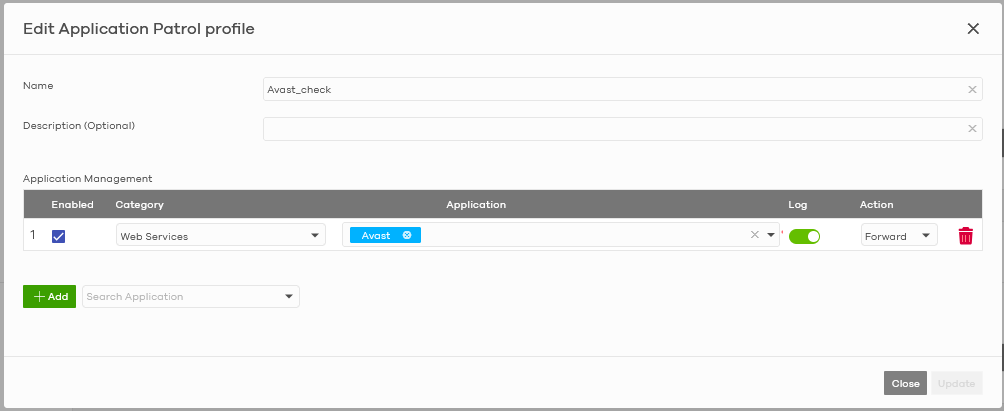 - Create an application profile for Avast.