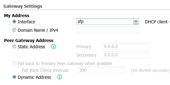 Establishing the tunnel starts, but there is a message of "Remote IP mismatch", and after that the firewall (FLEX100) tries to connect directly to the private IP behind NAT. On the 60AX side I can't find the setting to set IKE to use the dynamic dns to use as local IP.