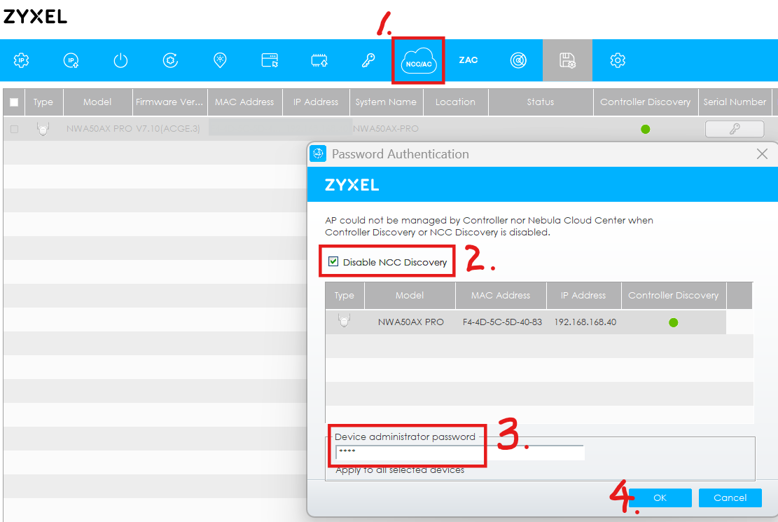 This option is available if the selected device supports NCC discovery. You must have Internet access to use this feature. Use this icon on the selected device to disable the NCC discovery feature.