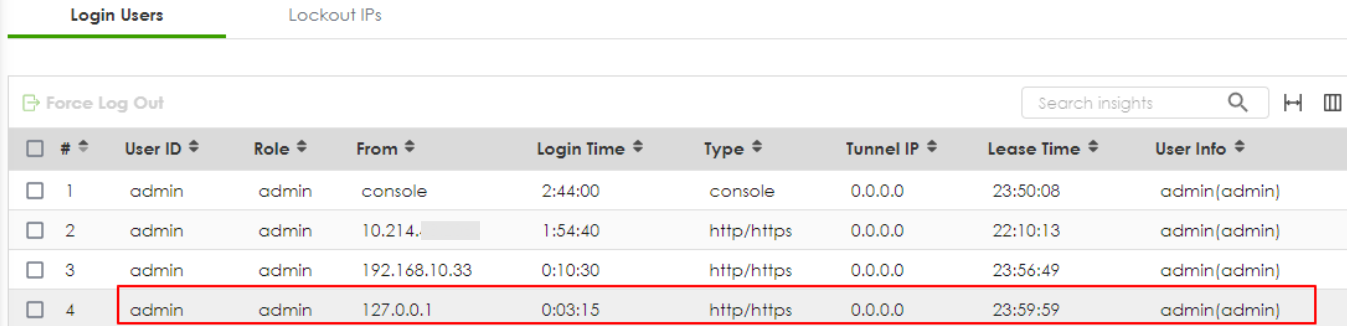 Why does the admin appear logged in at "127.0.0.1"?