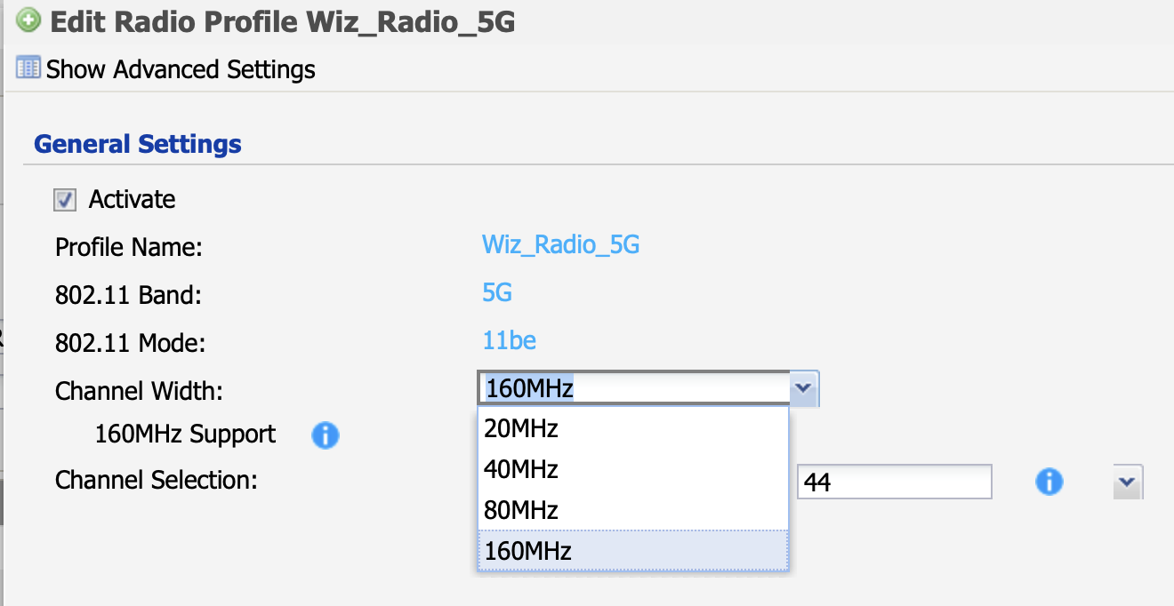 NWA50BE 5G Channel Width limited at 160 Mhz