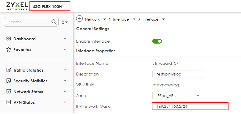 This example illustrates how to send logs of USG FLEX 100H to the syslog server over route-based VPN.