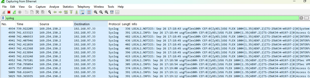 USG FLEX 100H----VPN----USG FLEX 500H(ge3: 192.168.97.1/24)------syslog server(192.168.97.33)