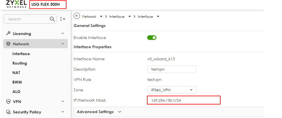 - Ensure the VTI (Virtual Tunnel Interface) IP addresses are configured within the same subnet on both devices. No additional policy route is necessary if the static routes are correctly generated by the VPN wizard.