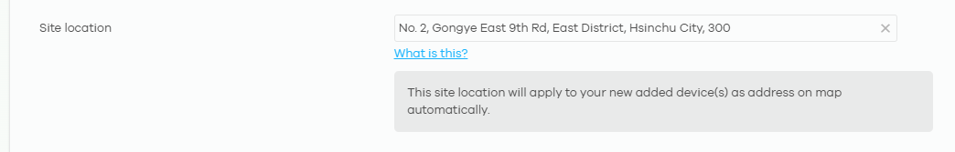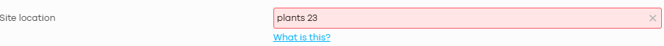 The site location input box turns red in Nebula, indicating a validation error. This usually means the entered address isn't recognized or doesn't match an expected format, which can affect the device's physical location mapping.