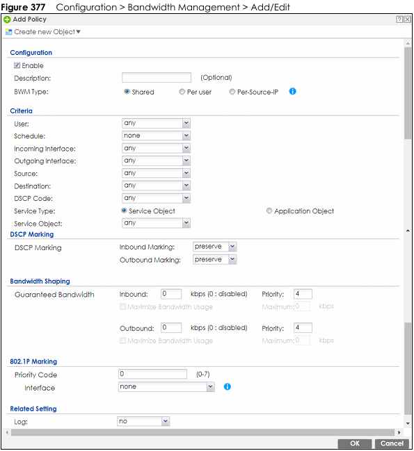 - Go to Configuration > Bandwidth Management > Add/Edit → Enable it, then add a rule to limit the bandwidth for VPN traffic