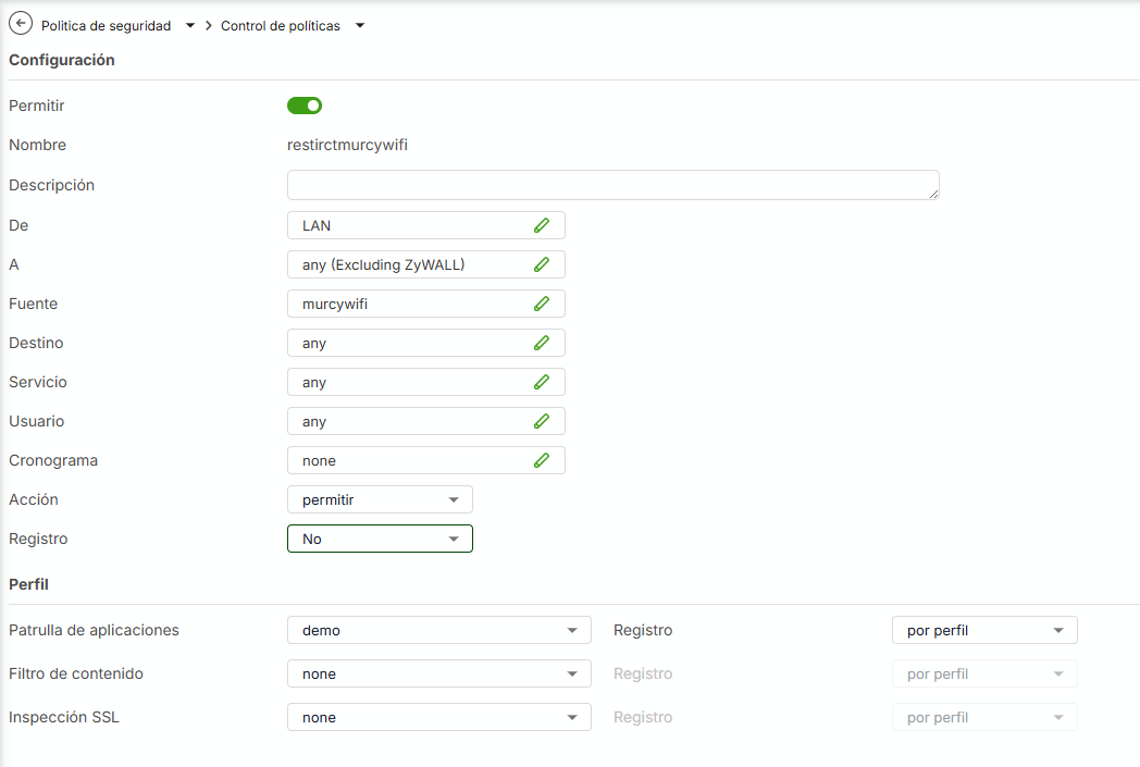 Gracias por la topología. Supongo que la dirección IP de la interfaz WAN de Mercusys corresponde al puerto LAN P3 del USG FLEX H. En ese caso, deberá configurar una política de seguridad con APP Patrol para la IP WAN de Mercusys. A continuación, encontrará un ejemplo. También le enviaré un video tutorial por mensaje privado.