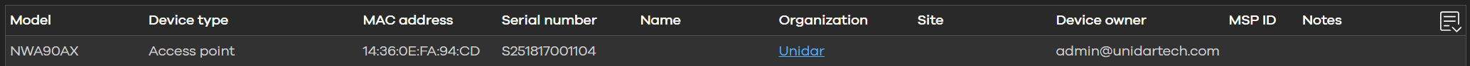 If your intention is to transfer the device to another account’s organization, please use the Nebula Mobile App to scan the device’s QR code and register it again under that account.