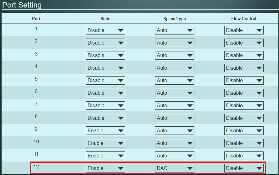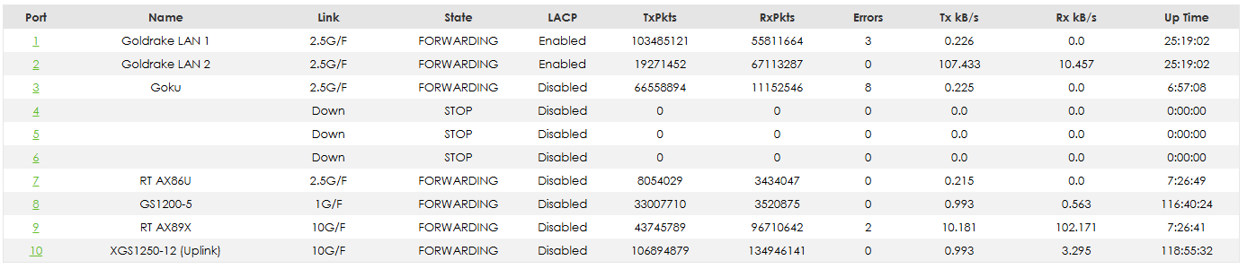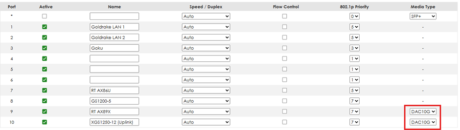 - Set by default and unchangeable for ports 9-10 (Router —> XS1930-10 —> XGS1250-12)