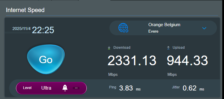 The router was accessible via DDNS service though.I've rebooted but only tested again the WAN speed this evening and so far I had 2000+ mbps DL / 950+ mbps UL without freezes.