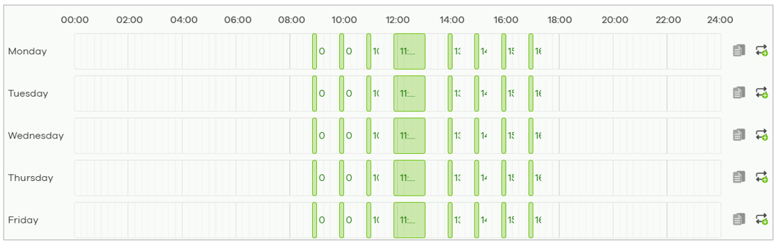 Multi-day convenience | Quickly duplicate schedules across weekdays. |