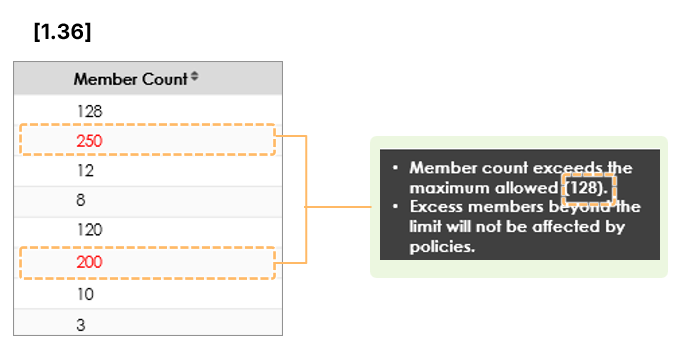 If a legacy configuration already exceeds the limit, the system displays a warning icon after upgrade, prompting users to adjust.