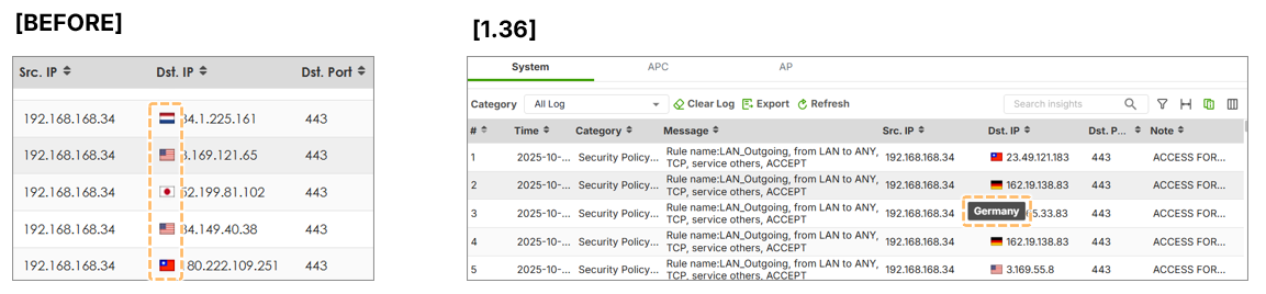 Previously, the Event Log only showed a flag icon for detected IP locations. Users who were unfamiliar with certain flags couldn’t easily identify the country.