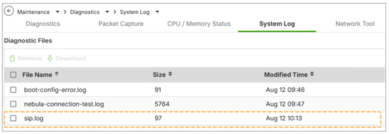 - These logs are saved under Maintenance > Diagnostic > System Log in the GUI.