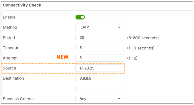 With this new feature, you can now explicitly specify the source IP used for reachability tests (ICMP ping) on both: