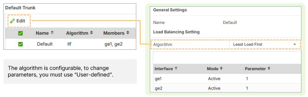 The Default Trunk Algorithm has been modernized to Least Load First, providing more intelligent and bandwidth-aware load balancing. This adjustment ensures smoother traffic distribution, better multi-WAN utilization, and alignment with other Zyxel firewall families.