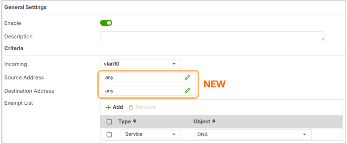 - In the Exempt List, Destination IP has been removed and repurposed to Walled Garden setting.