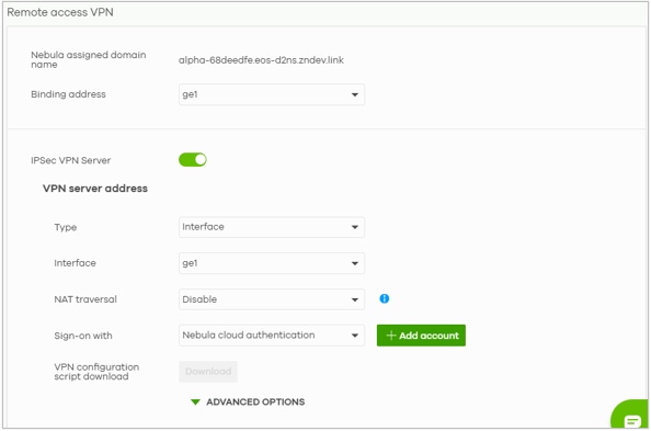 Previously, configuring Remote Access VPN was only possible via local firewall interfaces. With the latest release Nebula 19.20, this feature is now available directly through Nebula Control Center.