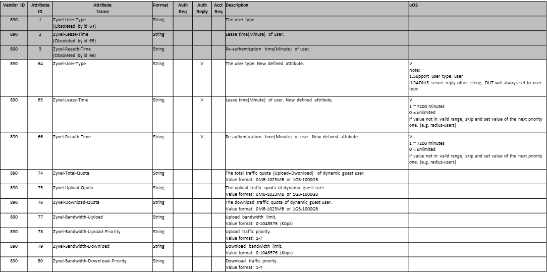 - ATTRIBUTE Zyxel-Session-Timeout 1 string Zyxel