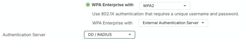 - SSID is setup for WPA2(3)-Enterprise set as "WPA Enterprise with = Internal Authentication server" and "Authentication server = AD configured above".