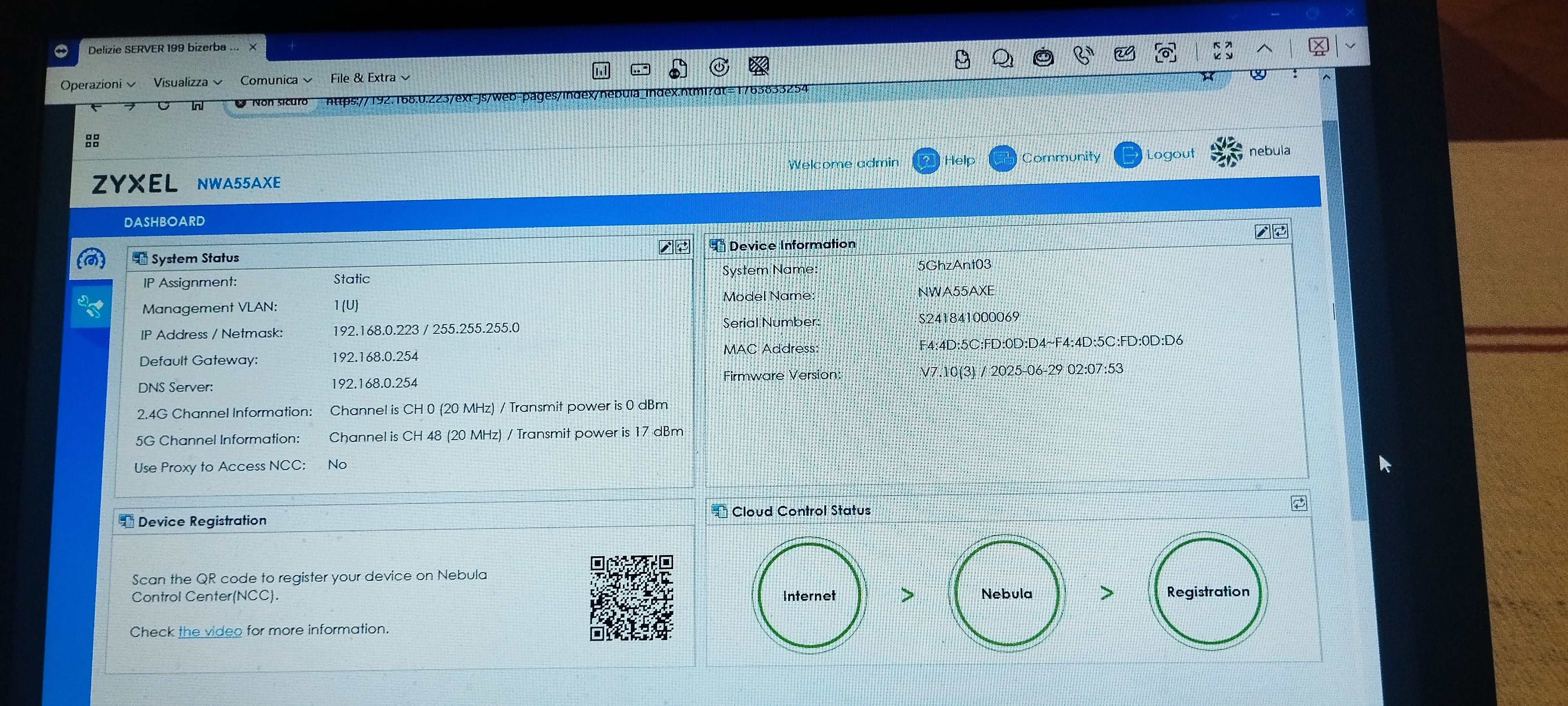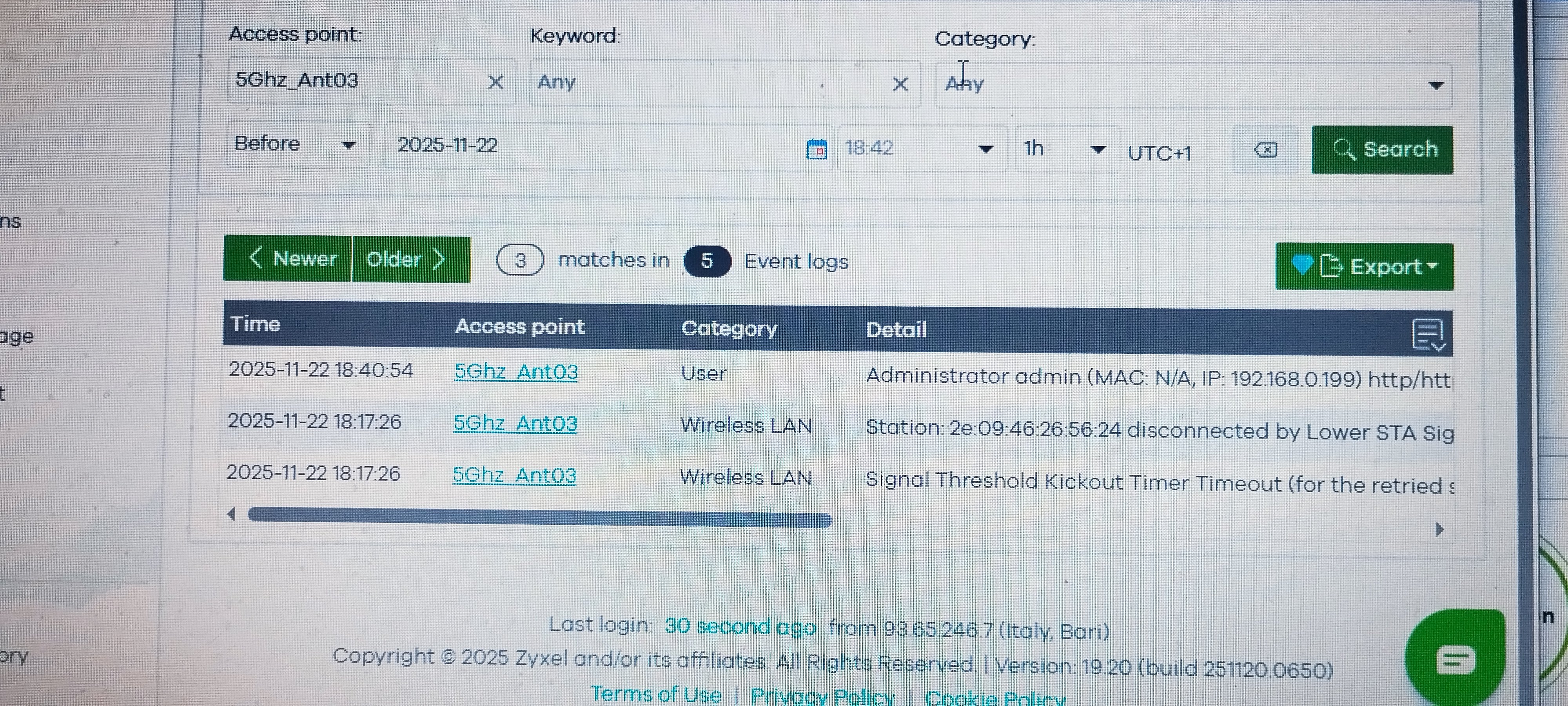 Salve , ho un AP nwa55axe su un impianto da 10 Ap che ha iniziato da più di un giorno ad andare Offline, ma io vedo nei lig log regolarmente tutte le attività .