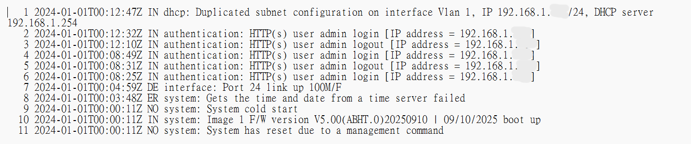 XGS1930 - Log information