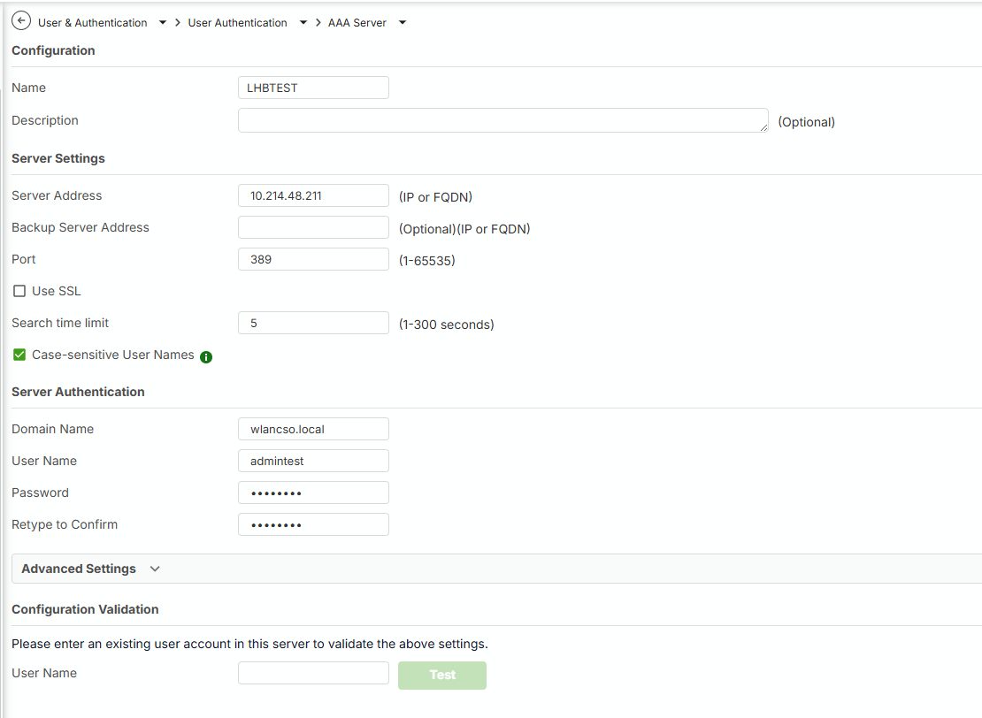 - Please navigate to User & Authentication > User Authentication > AD Server summary to add your AD server.