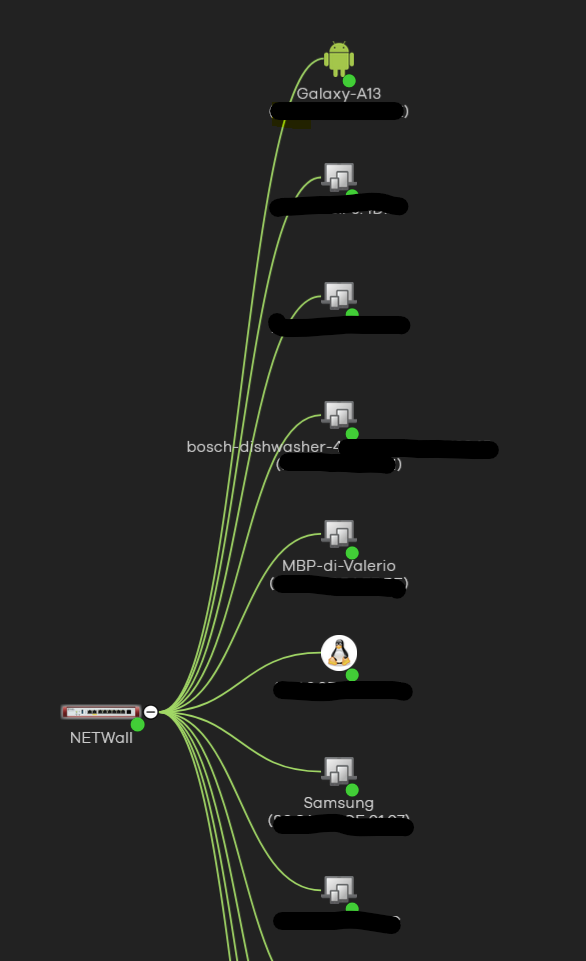 As you can see, all the devices (also an Android phone, the dishwasher, etc etc) are all part of the NETWall (the firewall).