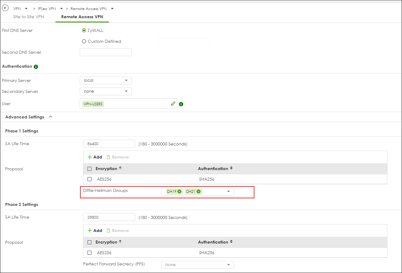 Windows 11 no longer supports the DH14 encryption group used in some VPN configurations. If your Zyxel firewall VPN proposal still includes DH14, Windows 11 will reject the connection.