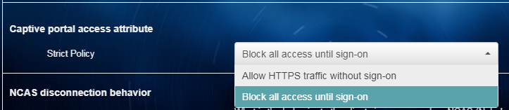 Captive portal access attribute(Strict Policy) is introduced as a new configuration allowing you to choose between giving access to HTTPS website or block all websites before signing in, the walled garden mechanism acts as a role to control the access therefore having some behavior differences.
