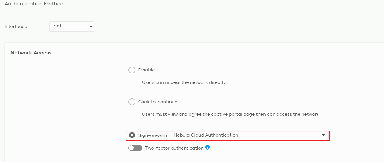 In “Interfaces” field, Select the Nebula Device’s interface (network) to which the settings you configure here is applied.