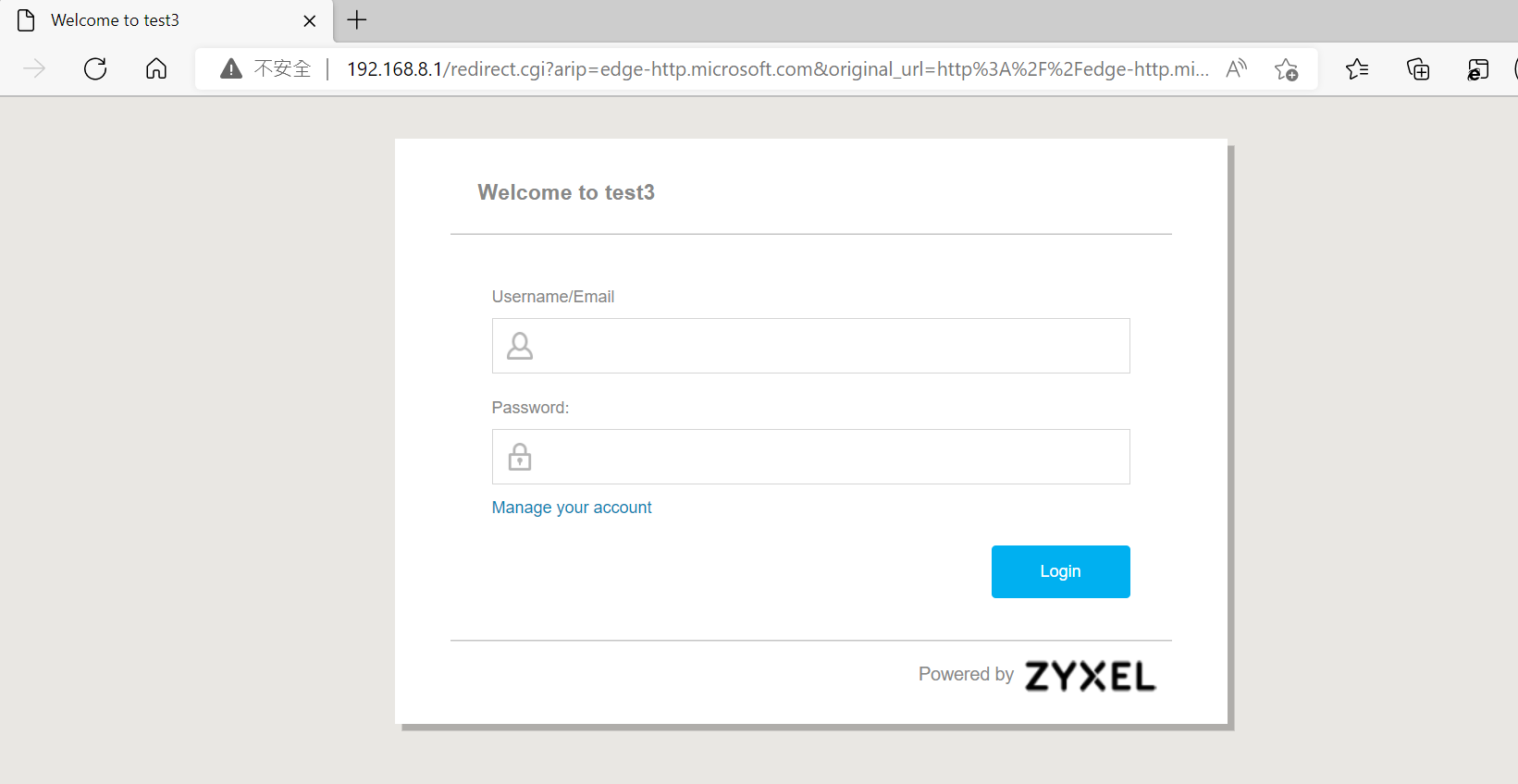 Test resultWhen opening the browser and trying to surf the internet, you will be redirected to the following login page and must verify the authentication to use internet services.