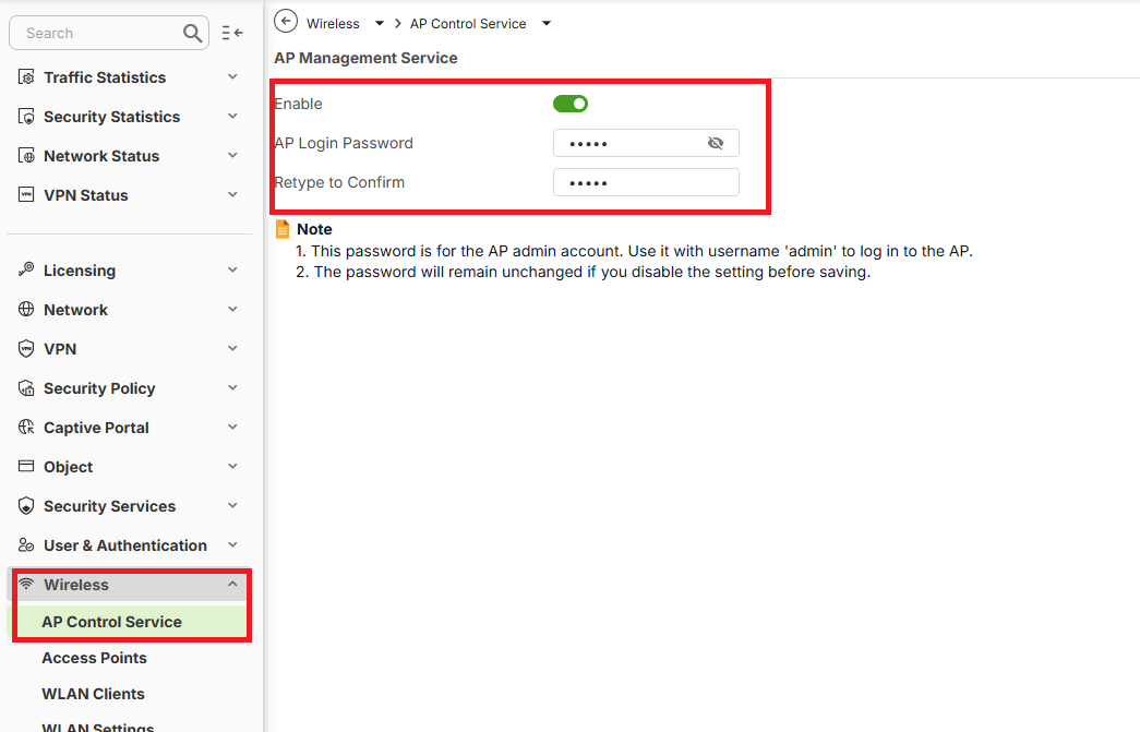 - Ensure the FLEX H firmware version is v1.32 or later (AP management is supported starting from uOS v1.32).