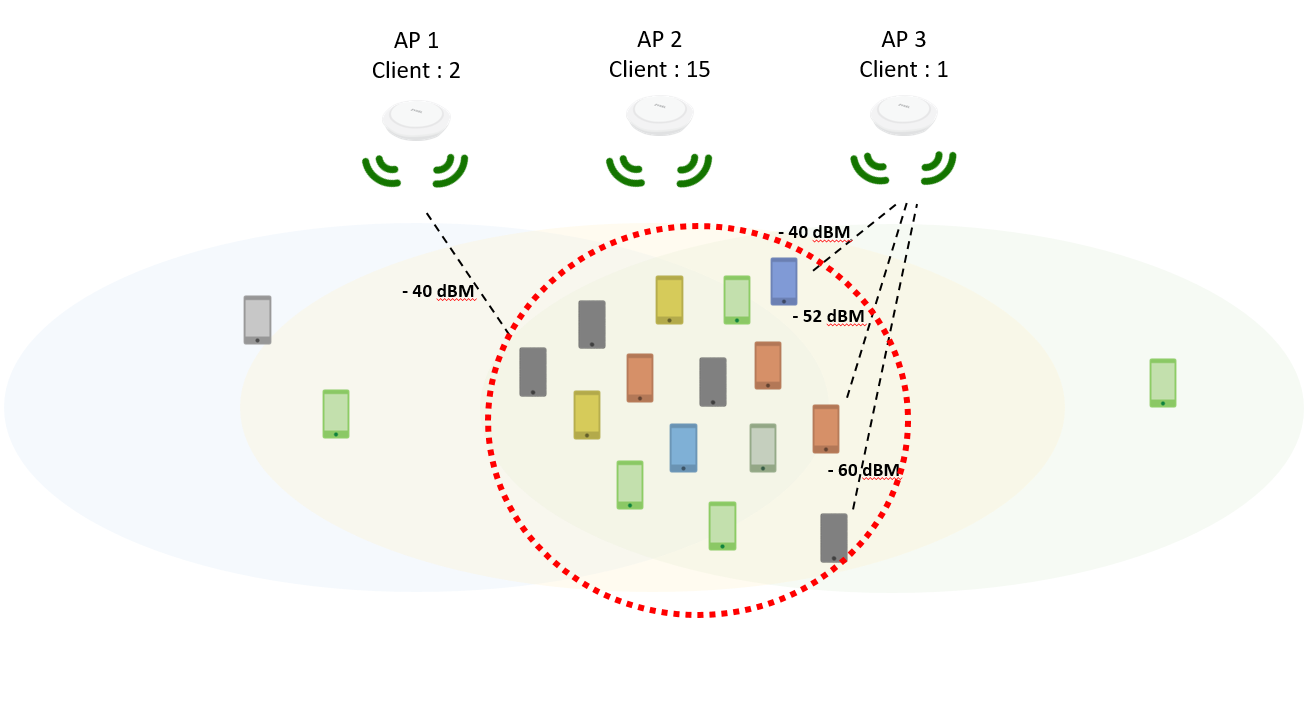 For example, please see picture below, in a high AP density deployment scenario, most of them connect to AP 2 even the signal to other APs are also well enough, User can setup load balance kick out idle client / weakest signal clients on AP 2 to balance the loading of AP in environment.