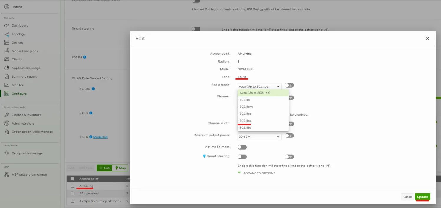The APs NWA130BE have Firmware V7.20(ACIL.3) and the NWA50AX V7.10(ABYW.3).