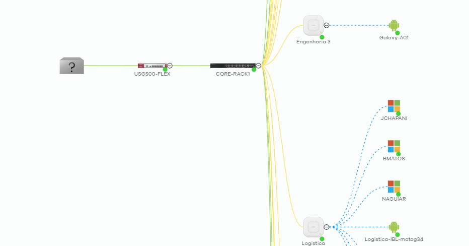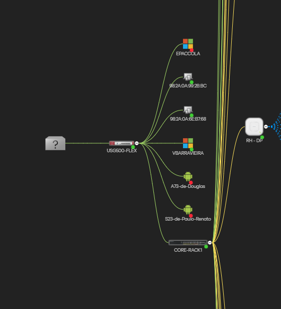 os dispositivos destacados em vermelho (aparecem conectados no firewall) estão conectados no core (switch) circulado em verde, já tentei diversas alternativas mas não consigo ajustar a topologia.