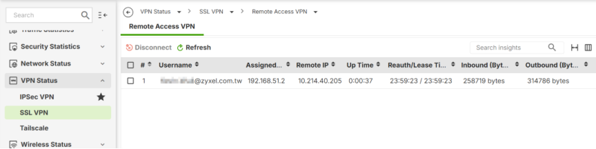 4. Check status at VPN Status > SSL VPN > Remote Access VPN.