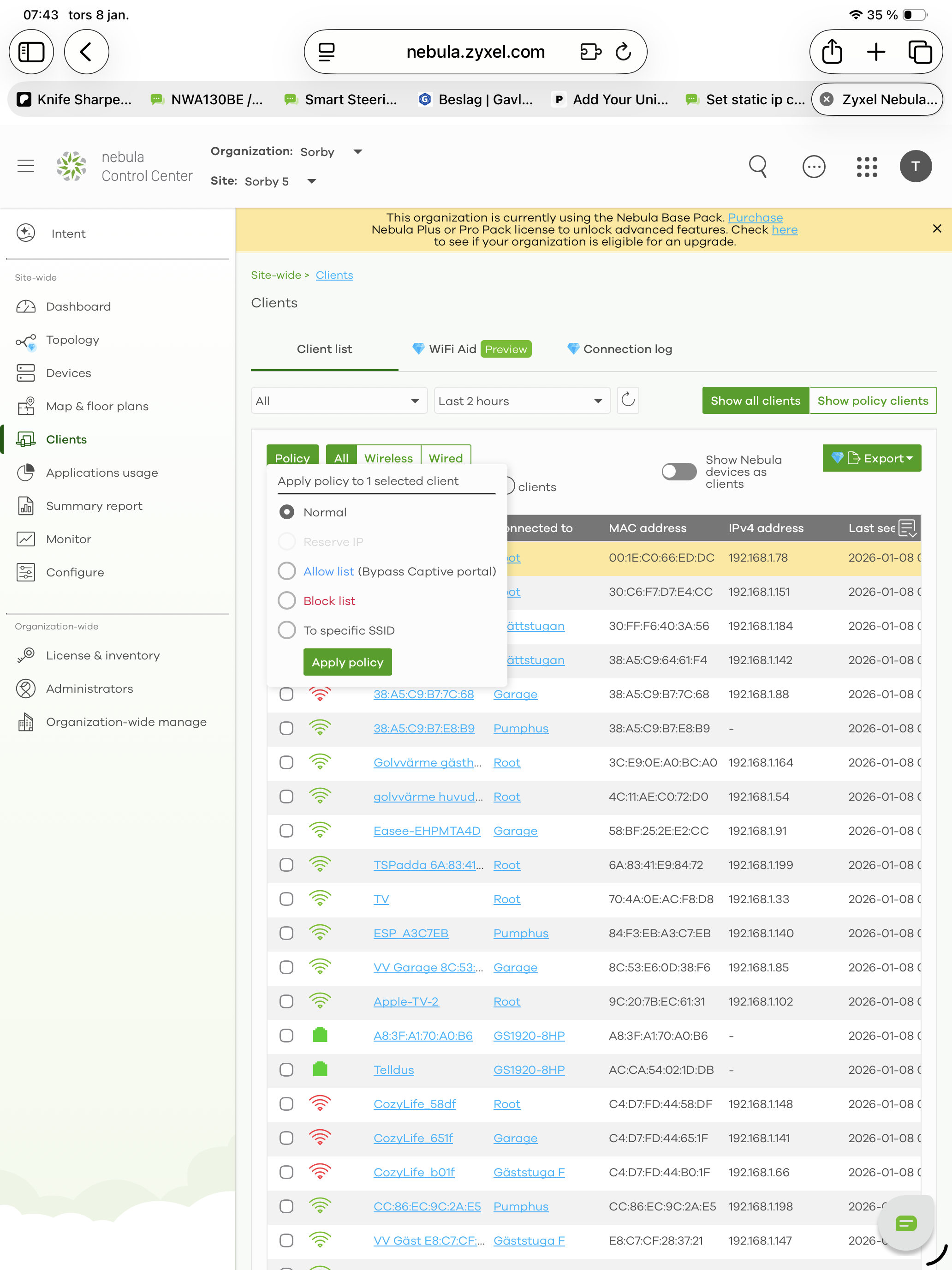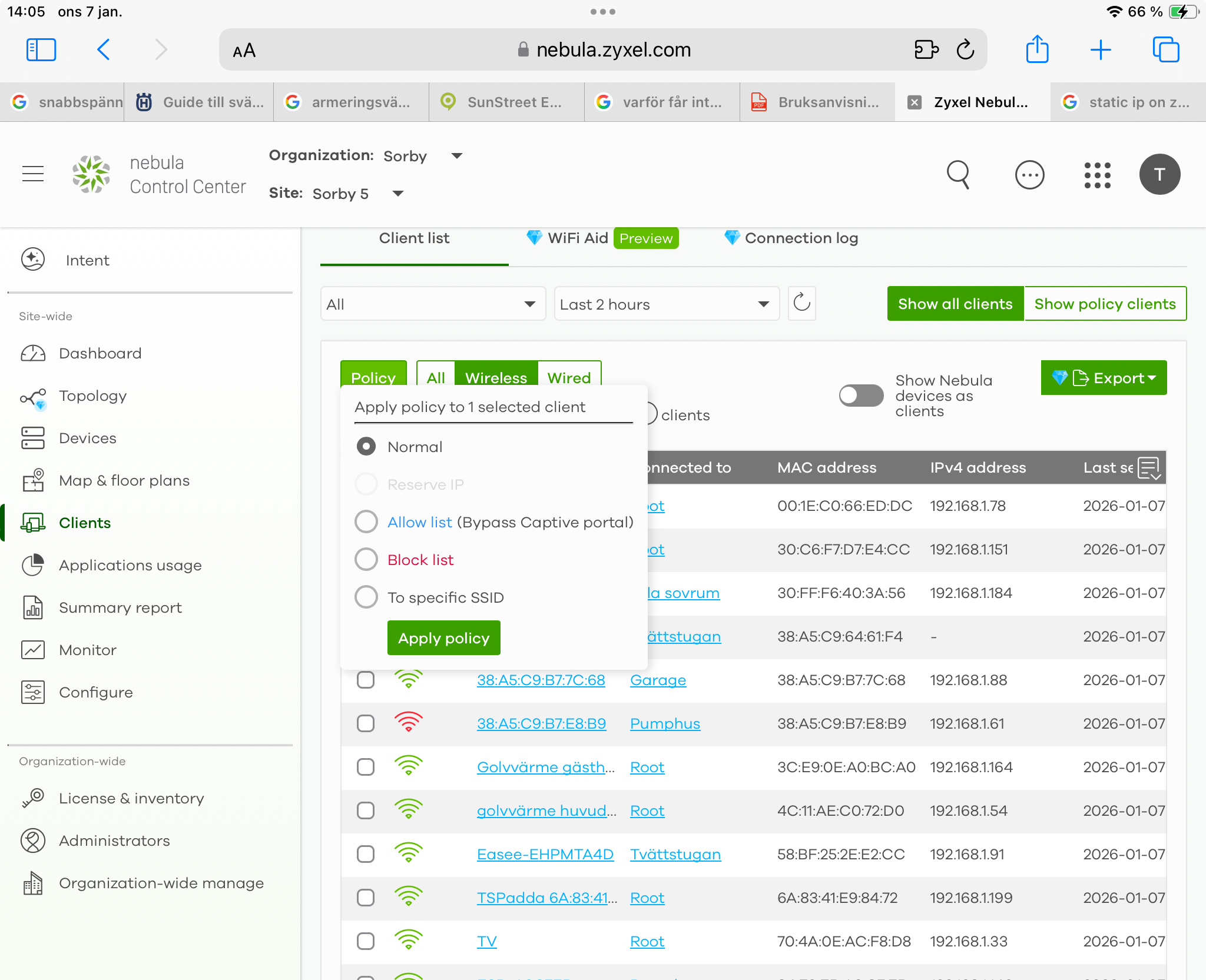 1. Navigate to the Client List: In your Nebula Control Center, go to Site-wide > Clients.