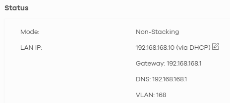 — port 4 -> PC admin access (VLAN 168)