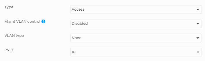 • For switch ports connected to client devices or APs that should not have access to the management VLAN, ensure that "Management VLAN Control" is disabled. This prevents the switch from assigning these ports as members of the management VLAN.