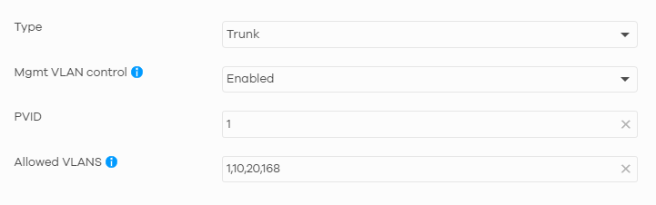 • For trunk ports connecting to your USG LITE 60AX and APs that do need to carry management VLAN traffic, "Management VLAN Control" should remain enabled.