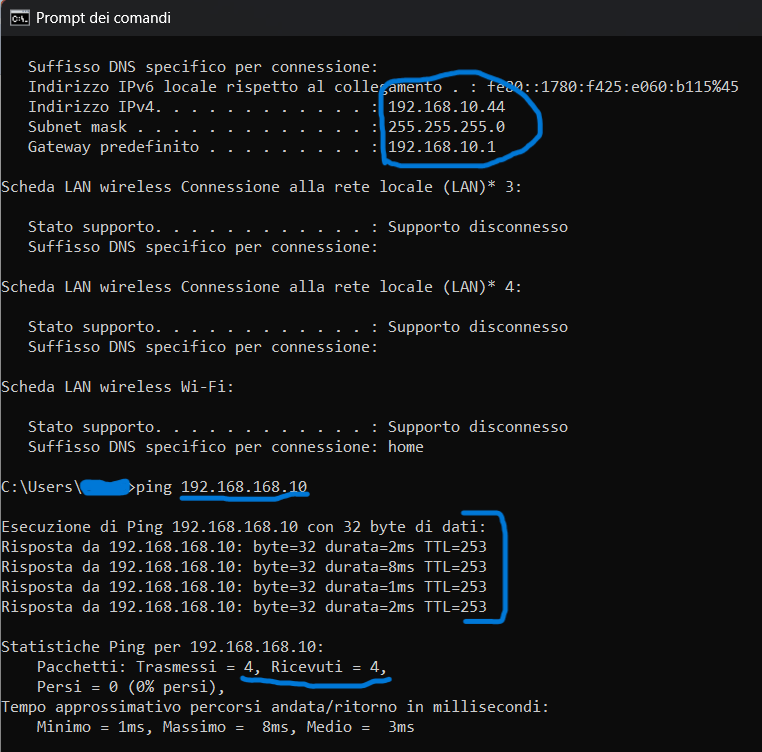 and also the clients connected directly to the switch ports with the client profile. The PC also correctly acquired the DHCP data in the correct client network. This is demonstrated by the ipconfig which, unfortunately, also shows that it can reach the switch without problems at the address 192.168.168.10
